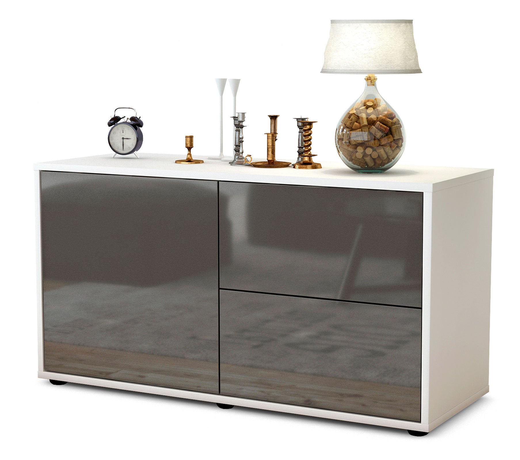 100% Hergestellt in Deutschland und mit Ökostrom produziert. Der Holzschrank überzeugt durch hochwertige Materialien sowie eine erstklassige und saubere Verarbeitung. Der Aufbau des Lowboards gestaltet sich aufgrund der Aufbauanleitung mit grafischen Darstellungen und Illustrationen einfach und schnell. Der Versand erfolgt innerhalb von 2-3 Werktagen. Dieses Lowboard hat Gesamt-Maße von 92x49x35cm. Viel Platz, eine leere Wand, kein passendes Möbelstück? Mit der Gesamtlänge von ca. 92 cm bietet dieser Schrank vielzählige Einsatzmöglichkeiten. Die Frontfarbe Hochglanz Graphit Grau ist zeitlos, schlicht und daher für jeden Wohnbereich glänzend geeignet. Anthrazit, dunkelgrau oder granit – diese Farbtöne bringen Stil & Glanz. Der weiße matte Korpus kann überall integriert werden. Mit der beruhigenden Farbe weiß, findet sich leicht Stellplatz für dieses schöne Möbelstück.