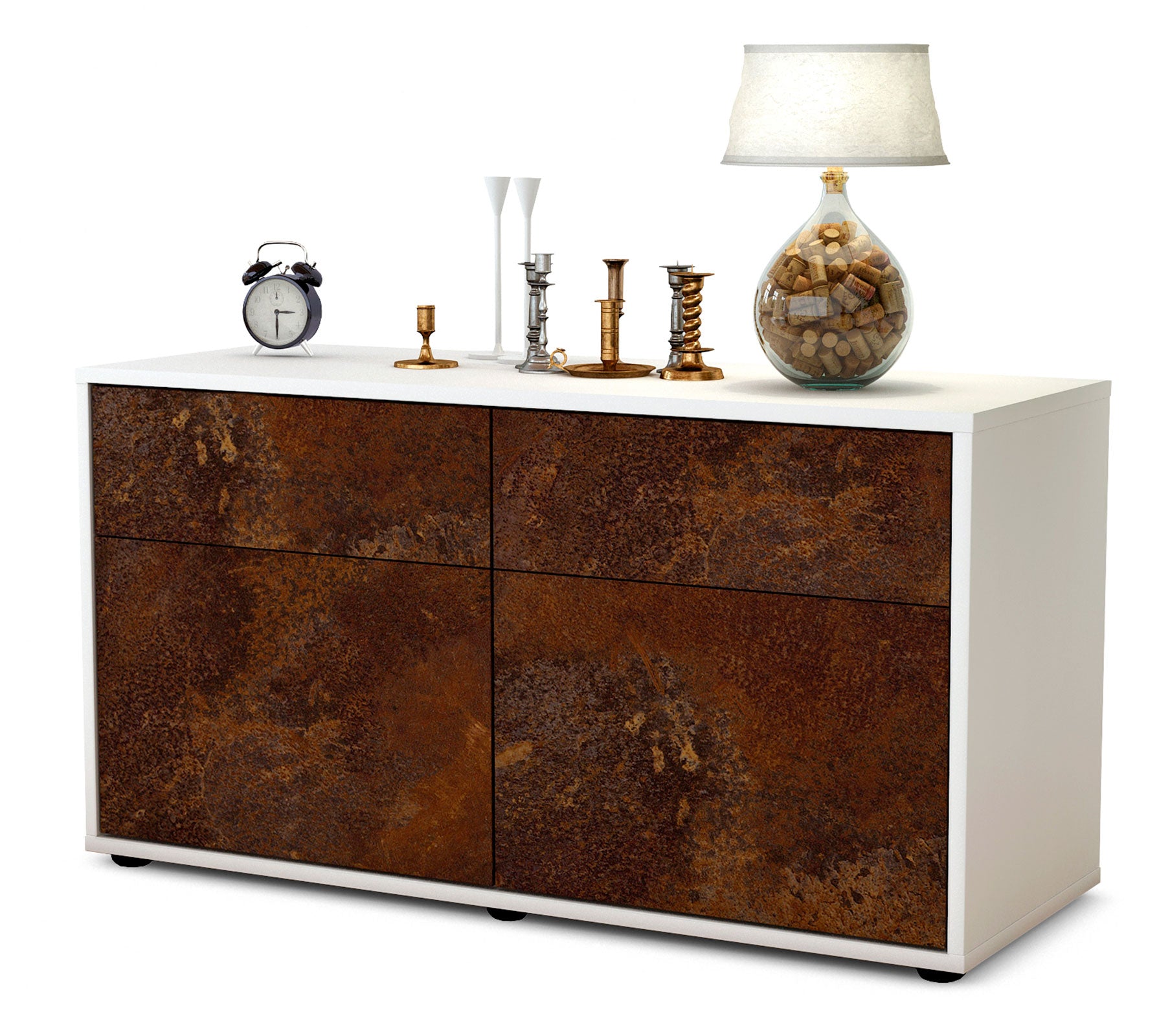 100% Hergestellt in Deutschland und mit Ökostrom produziert. Der Holzschrank überzeugt durch hochwertige Materialien sowie eine erstklassige und saubere Verarbeitung. Der Aufbau des Lowboards gestaltet sich aufgrund der Aufbauanleitung mit grafischen Darstellungen und Illustrationen einfach und schnell. Der Versand erfolgt innerhalb von 2-3 Werktagen. Dieses Lowboard hat Gesamt-Maße von 92x49x35cm. Viel Platz, eine leere Wand, kein passendes Möbelstück? Mit der Gesamtlänge von ca. 92 cm bietet dieser Schrank vielzählige Einsatzmöglichkeiten. Die Frontfarbe Rost wirkt antik und verleiht einen Retro Industrie-Look. Die Darstellung von alten, verwitterten oder verrosteten Metall / Eisen wirkt Rot-Braun bzw. Bronze-Farben. Der weiße matte Korpus kann überall integriert werden. Mit der beruhigenden Farbe weiß, findet sich leicht Stellplatz für dieses schöne Möbelstück.