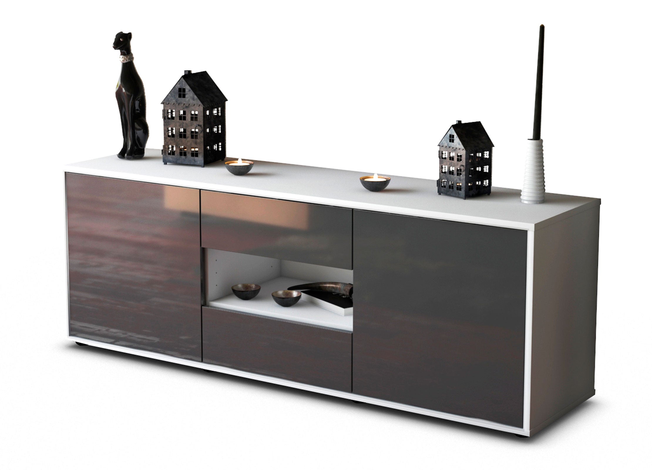 100% Hergestellt in Deutschland und mit Ökostrom produziert. Der Holzschrank überzeugt durch hochwertige Materialien sowie eine erstklassige und saubere Verarbeitung. Der Aufbau des Lowboards gestaltet sich aufgrund der Aufbauanleitung mit grafischen Darstellungen und Illustrationen einfach und schnell. Der Versand erfolgt innerhalb von 2-3 Werktagen. Dieses Lowboard hat Gesamt-Maße von 136x49x35cm. Viel Platz, eine leere Wand, kein passendes Möbelstück? Mit der Gesamtlänge von ca. 1,36 Meter bietet dieser Schrank vielzählige Einsatzmöglichkeiten. Die Frontfarbe Hochglanz Graphit Grau ist zeitlos, schlicht und daher für jeden Wohnbereich glänzend geeignet. Anthrazit, dunkelgrau oder granit – diese Farbtöne bringen Stil & Glanz. Der weiße matte Korpus kann überall integriert werden. Mit der beruhigenden Farbe weiß, findet sich leicht Stellplatz für dieses schöne Möbelstück.
