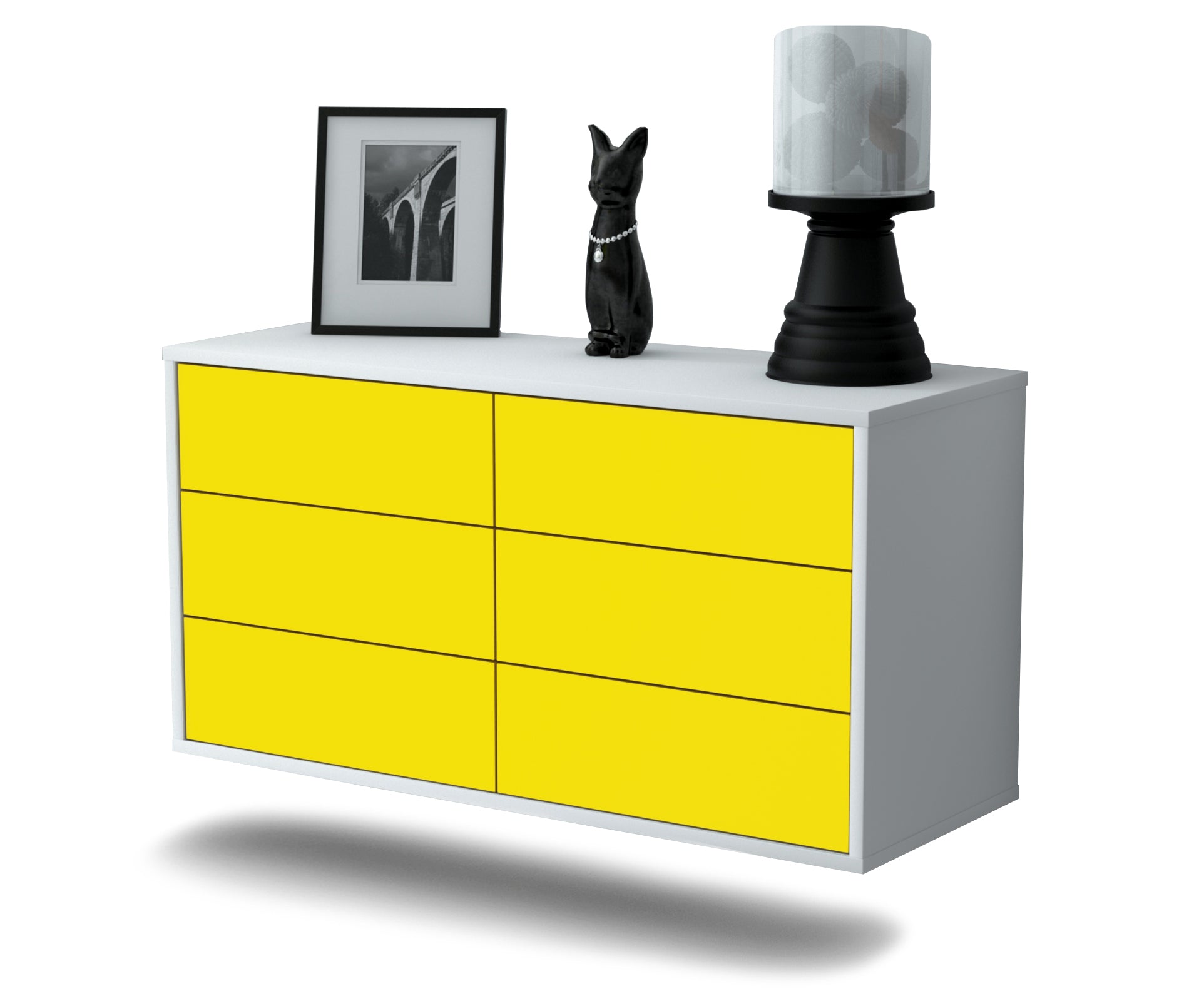 100% Hergestellt in Deutschland und mit Ökostrom produziert. Der Holzschrank überzeugt durch hochwertige Materialien sowie eine erstklassige und saubere Verarbeitung. Der Aufbau des Lowboards gestaltet sich aufgrund der Aufbauanleitung mit grafischen Darstellungen und Illustrationen einfach und schnell. Der Versand erfolgt innerhalb von 2-3 Werktagen. Dieses Lowboard hat Gesamt-Maße von 92x49x35cm. Viel Platz, eine leere Wand, kein passendes Möbelstück? Mit der Gesamtlänge von ca. 92 cm bietet dieser Schrank vielzählige Einsatzmöglichkeiten. Die Frontfarbe Sonnengelb verleiht Räumen Freude und positive Energie ohne diesen farblich zu überfluten. Der eher gelb pastell Ton verschafft eine frische Atmosphäre.Der weiße matte Korpus kann überall integriert werden. Mit der beruhigenden Farbe weiß, findet sich leicht Stellplatz für dieses schöne Möbelstück.