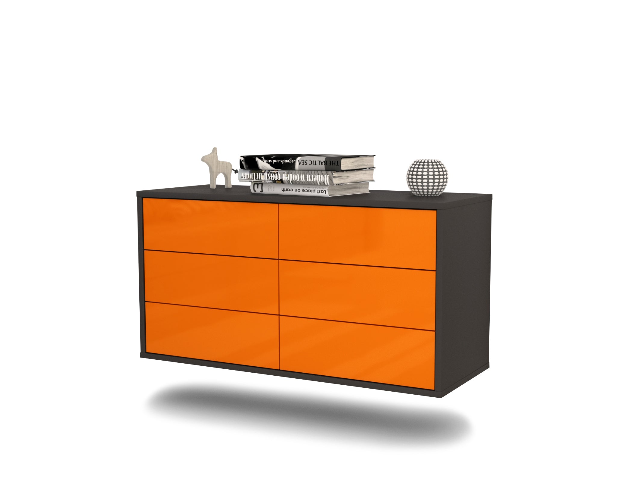 100% Hergestellt in Deutschland und mit Ökostrom produziert. Der Holzschrank überzeugt durch hochwertige Materialien sowie eine erstklassige und saubere Verarbeitung. Der Aufbau des Lowboards gestaltet sich aufgrund der Aufbauanleitung mit grafischen Darstellungen und Illustrationen einfach und schnell. Der Versand erfolgt innerhalb von 2-3 Werktagen. Dieses Lowboard hat Gesamt-Maße von 92x49x35cm. Viel Platz, eine leere Wand, kein passendes Möbelstück? Mit der Gesamtlänge von ca. 92 cm bietet dieser Schrank vielzählige Einsatzmöglichkeiten. Die Frontfarbe Hochglanz Mandarine überzeugt durch ein intensives Orange mit tollem Glanz. Fröhlich und gläzend wird diese Farbe jeden Raum für sich einehmen. Der anthrazit-matte Korpus harmoniert mit allen Farben und wirkt besonders edel im Kontrast zu hellen Wänden.