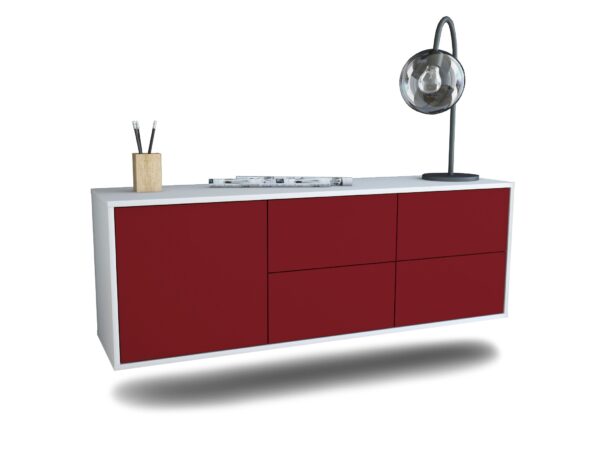 100% Hergestellt in Deutschland und mit Ökostrom produziert. Der Holzschrank überzeugt durch hochwertige Materialien sowie eine erstklassige und saubere Verarbeitung. Der Aufbau des Lowboards gestaltet sich aufgrund der Aufbauanleitung mit grafischen Darstellungen und Illustrationen einfach und schnell. Der Versand erfolgt innerhalb von 2-3 Werktagen. Dieses Lowboard hat Gesamt-Maße von 136x49x35cm. Viel Platz, eine leere Wand, kein passendes Möbelstück? Mit der Gesamtlänge von ca. 1,36 Meter bietet dieser Schrank vielzählige Einsatzmöglichkeiten. Die Frontfarbe dunkles Bordeaux Rot bringt Wärme ins Haus. Das intensive Weinrot ist einer der edelsten Rot Töne und verleiht jeder Einrichtung einen Glamour Faktor.Der weiße matte Korpus kann überall integriert werden. Mit der beruhigenden Farbe weiß, findet sich leicht Stellplatz für dieses schöne Möbelstück.