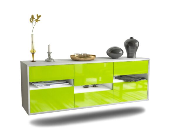 100% Hergestellt in Deutschland und mit Ökostrom produziert. Der Holzschrank überzeugt durch hochwertige Materialien sowie eine erstklassige und saubere Verarbeitung. Der Aufbau des Lowboards gestaltet sich aufgrund der Aufbauanleitung mit grafischen Darstellungen und Illustrationen einfach und schnell. Der Versand erfolgt innerhalb von 2-3 Werktagen. Dieses Lowboard hat Gesamt-Maße von 136x49x35cm. Viel Platz, eine leere Wand, kein passendes Möbelstück? Mit der Gesamtlänge von ca. 1,36 Meter bietet dieser Schrank vielzählige Einsatzmöglichkeiten. Die Frontfarbe Hochglanz Limettengrün bringt Schwung, Glanz und Farbe in jede Wohnung. Das knallig, leuchtende grün ist glänzend und wirkt wie ein frisches Apfelgrün oder eine saftige Limette. Der weiße matte Korpus kann überall integriert werden. Mit der beruhigenden Farbe weiß, findet sich leicht Stellplatz für dieses schöne Möbelstück.