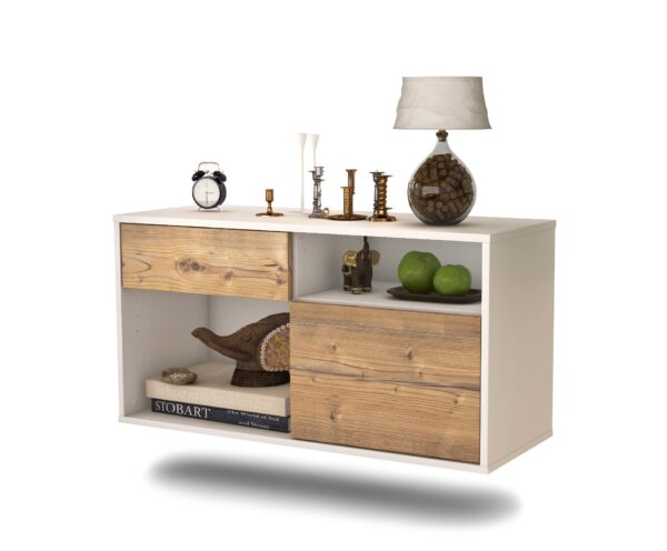 100% Hergestellt in Deutschland und mit Ökostrom produziert. Der Holzschrank überzeugt durch hochwertige Materialien sowie eine erstklassige und saubere Verarbeitung. Der Aufbau des Lowboards gestaltet sich aufgrund der Aufbauanleitung mit grafischen Darstellungen und Illustrationen einfach und schnell. Der Versand erfolgt innerhalb von 2-3 Werktagen. Dieses Lowboard hat Gesamt-Maße von 92x49x35cm. Viel Platz, eine leere Wand, kein passendes Möbelstück? Mit der Gesamtlänge von ca. 92 cm bietet dieser Schrank vielzählige Einsatzmöglichkeiten. Die Holz Front Pinie Nachbildung ist ein freundliches Braun mit farblich abgesetzter Holzmaserung. Die Integrierung in Wohnräume ist durch das warme Holz leicht möglich. Der weiße matte Korpus kann überall integriert werden. Mit der beruhigenden Farbe weiß, findet sich leicht Stellplatz für dieses schöne Möbelstück.