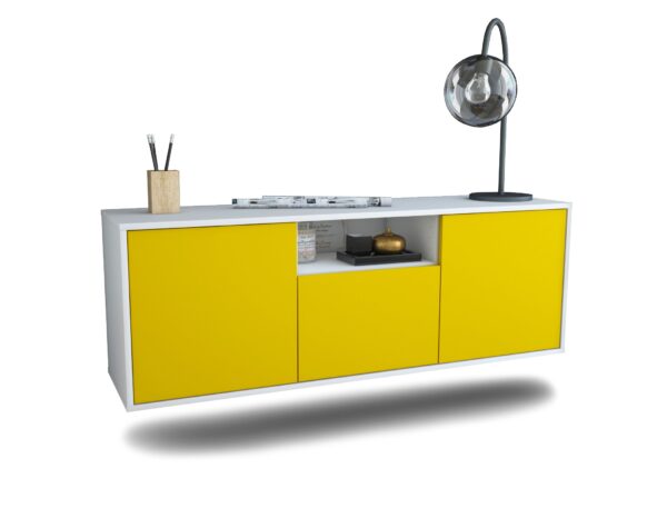 100% Hergestellt in Deutschland und mit Ökostrom produziert. Der Holzschrank überzeugt durch hochwertige Materialien sowie eine erstklassige und saubere Verarbeitung. Der Aufbau des Lowboards gestaltet sich aufgrund der Aufbauanleitung mit grafischen Darstellungen und Illustrationen einfach und schnell. Der Versand erfolgt innerhalb von 2-3 Werktagen. Dieses Lowboard hat Gesamt-Maße von 136x49x35cm. Viel Platz, eine leere Wand, kein passendes Möbelstück? Mit der Gesamtlänge von ca. 1,36 Meter bietet dieser Schrank vielzählige Einsatzmöglichkeiten. Die Frontfarbe Sonnengelb verleiht Räumen Freude und positive Energie ohne diesen farblich zu überfluten. Der eher gelb pastell Ton verschafft eine frische Atmosphäre.Der weiße matte Korpus kann überall integriert werden. Mit der beruhigenden Farbe weiß, findet sich leicht Stellplatz für dieses schöne Möbelstück.