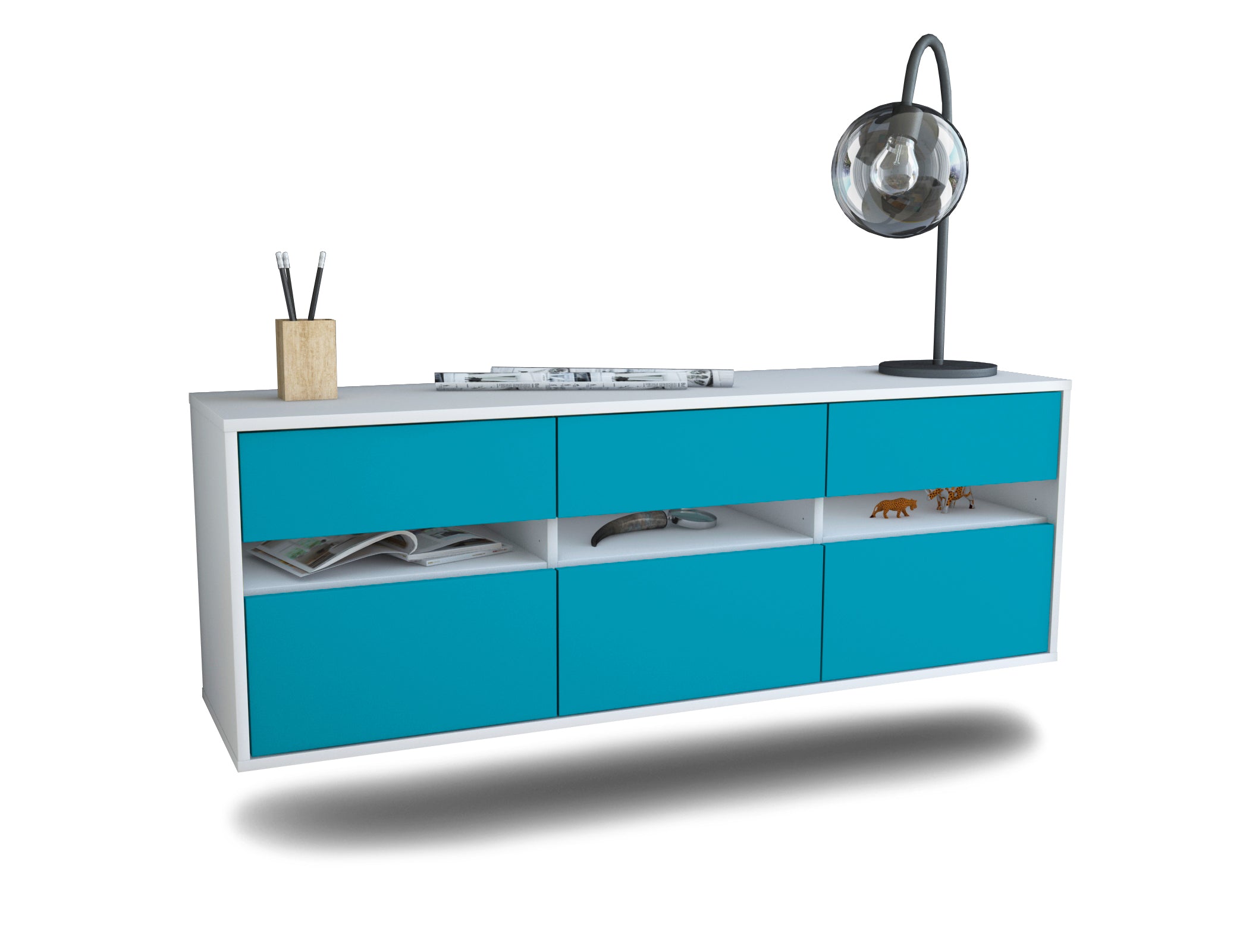 100% Hergestellt in Deutschland und mit Ökostrom produziert. Der Holzschrank überzeugt durch hochwertige Materialien sowie eine erstklassige und saubere Verarbeitung. Der Aufbau des Lowboards gestaltet sich aufgrund der Aufbauanleitung mit grafischen Darstellungen und Illustrationen einfach und schnell. Der Versand erfolgt innerhalb von 2-3 Werktagen. Dieses Lowboard hat Gesamt-Maße von 136x49x35cm. Viel Platz, eine leere Wand, kein passendes Möbelstück? Mit der Gesamtlänge von ca. 1,36 Meter bietet dieser Schrank vielzählige Einsatzmöglichkeiten. Die Frontfarbe im freundlichen Lagunenblau bringt das schöne Wetter in jedes Zuhause. Das intensive Türkis erinnert an die Karibik und schafft tagtägich einen zusätzlichen Erhoungsfaktor. Der weiße matte Korpus kann überall integriert werden. Mit der beruhigenden Farbe weiß, findet sich leicht Stellplatz für dieses schöne Möbelstück.