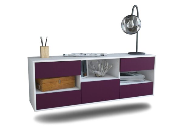 100% Hergestellt in Deutschland und mit Ökostrom produziert. Der Holzschrank überzeugt durch hochwertige Materialien sowie eine erstklassige und saubere Verarbeitung. Der Aufbau des Lowboards gestaltet sich aufgrund der Aufbauanleitung mit grafischen Darstellungen und Illustrationen einfach und schnell. Der Versand erfolgt innerhalb von 2-3 Werktagen. Dieses Lowboard hat Gesamt-Maße von 136x49x35cm. Viel Platz, eine leere Wand, kein passendes Möbelstück? Mit der Gesamtlänge von ca. 1,36 Meter bietet dieser Schrank vielzählige Einsatzmöglichkeiten. Die Frontfarbe im kräftigen Aubergine wirkt als Farbtupfer in allen Räumlichkeiten. Lila, violett und Brombeer Töne versprühen Glamour und Eleganz. Der weiße matte Korpus kann überall integriert werden. Mit der beruhigenden Farbe weiß, findet sich leicht Stellplatz für dieses schöne Möbelstück.