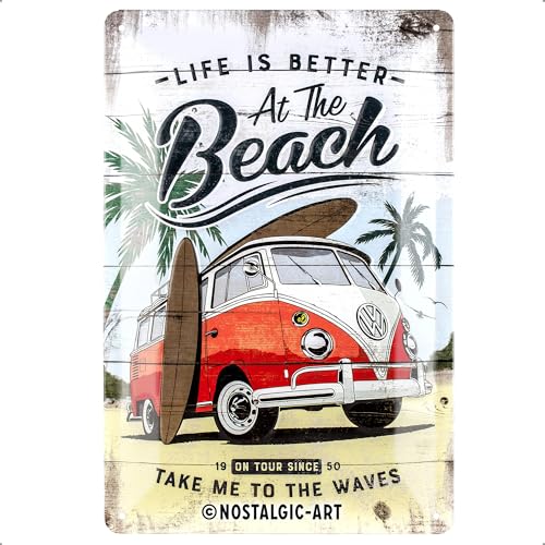 Nostalgic-Art Retro Blechschild Volkswagen Bulli T1 – Beach – VW Bus Geschenk-Idee, aus Metall, Vintage-Design zur Dekoration, 20 x 30 cm