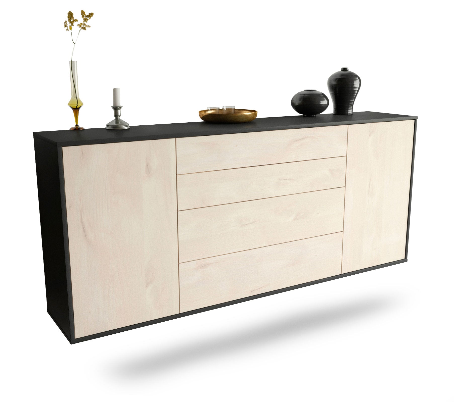 Dieses Sideboard hat Gesamt-Maße von 180x79x35cm. Viel Platz, eine leere Wand, kein passendes Möbelstück? Unsere 1,80 m lange Kommode ist die perfekte Lösung! Die Holz Front Zeder Nachbildung ist ein Holz Dekor welches sehr hell und mit einer dezenten Holzmaserung punktet. Durch das frische Dekor ist der Schrank ideal für alle Räume geeignet. Der anthrazit-matte Korpus harmoniert mit allen Farben und wirkt besonders edel im Kontrast zu hellen Wänden.