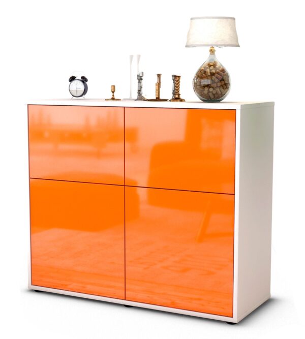 Dieses Sideboard hat Gesamt-Maße von 92x79x35cm. Viel Platz, eine leere Wand, kein passendes Möbelstück? Unsere 92 cm lange Kommode ist die perfekte Lösung! Die Frontfarbe Hochglanz Mandarine überzeugt durch ein intensives Orange mit tollem Glanz. Fröhlich und gläzend wird diese Farbe jeden Raum für sich einehmen. Der weiße matte Korpus kann überall integriert werden. Mit der beruhigenden Farbe weiß, findet sich leicht Stellplatz für dieses schöne Möbelstück.
