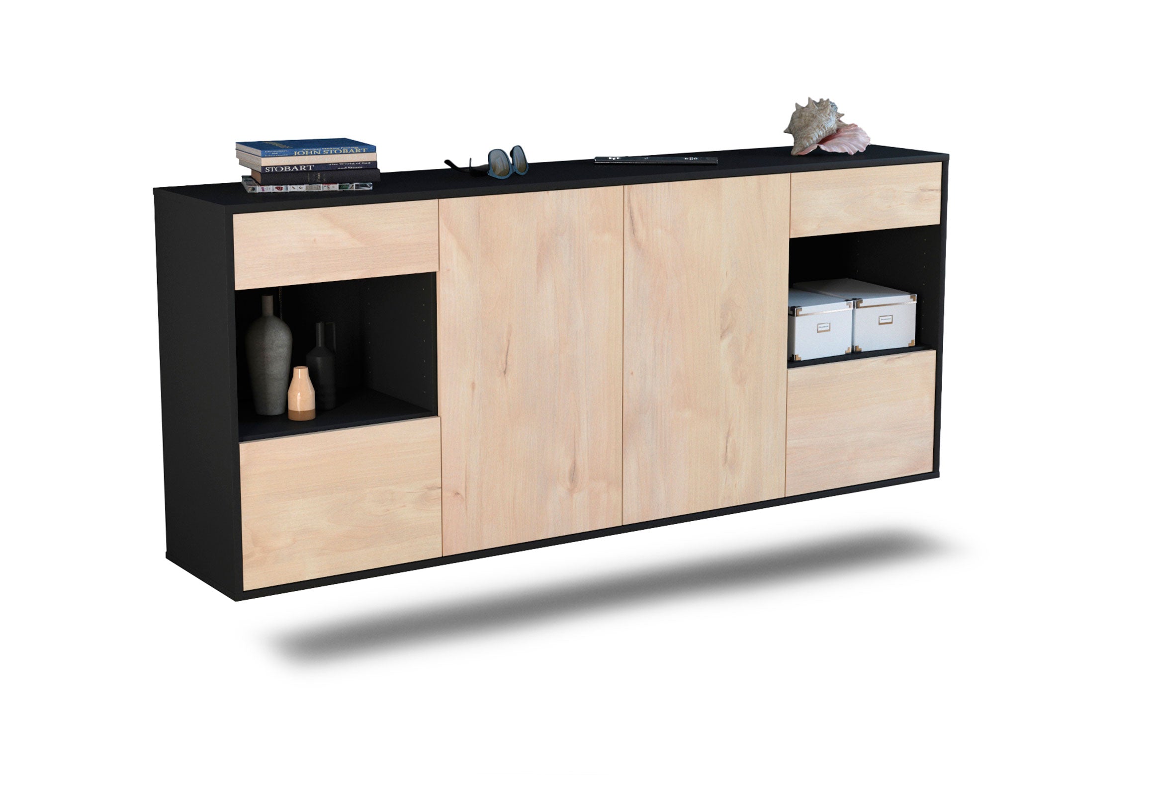 Dieses Sideboard hat Gesamt-Maße von 180x79x35cm. Viel Platz, eine leere Wand, kein passendes Möbelstück? Unsere 1,80 m lange Kommode ist die perfekte Lösung! Die Holz Front Zeder Nachbildung ist ein Holz Dekor welches sehr hell und mit einer dezenten Holzmaserung punktet. Durch das frische Dekor ist der Schrank ideal für alle Räume geeignet. Der anthrazit-matte Korpus harmoniert mit allen Farben und wirkt besonders edel im Kontrast zu hellen Wänden.