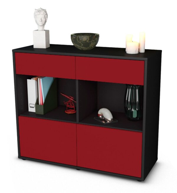 Dieses Sideboard hat Gesamt-Maße von 92x79x35cm. Viel Platz, eine leere Wand, kein passendes Möbelstück? Unsere 92 cm lange Kommode ist die perfekte Lösung! Die Frontfarbe dunkles Bordeaux Rot bringt Wärme ins Haus. Das intensive Weinrot ist einer der edelsten Rot Töne und verleiht jeder Einrichtung einen Glamour Faktor.Der anthrazit-matte Korpus harmoniert mit allen Farben und wirkt besonders edel im Kontrast zu hellen Wänden.
