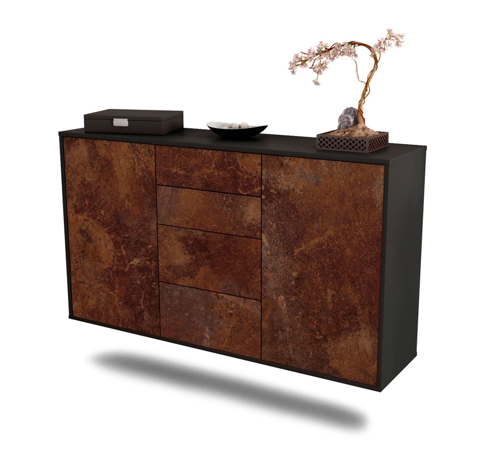 Dieses Sideboard hat Gesamt-Maße von 136x79x35cm. Viel Platz, eine leere Wand, kein passendes Möbelstück? Unsere 1,36 m lange Kommode ist die perfekte Lösung! Die Frontfarbe Rost wirkt antik und verleiht einen Retro Industrie-Look. Die Darstellung von alten, verwitterten oder verrosteten Metall / Eisen wirkt Rot-Braun bzw. Bronze-Farben. Der anthrazit-matte Korpus harmoniert mit allen Farben und wirkt besonders edel im Kontrast zu hellen Wänden.