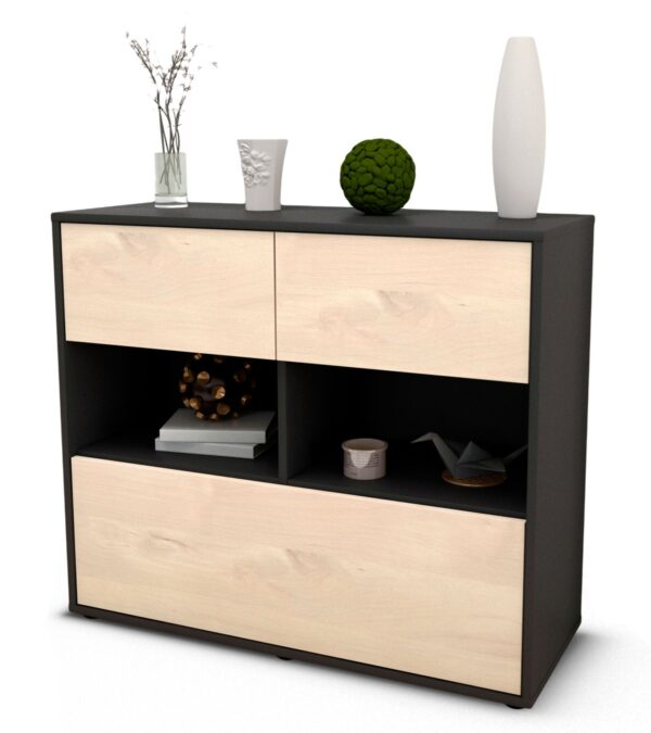 Dieses Sideboard hat Gesamt-Maße von 92x79x35cm. Viel Platz, eine leere Wand, kein passendes Möbelstück? Unsere 92 cm lange Kommode ist die perfekte Lösung! Die Holz Front Zeder Nachbildung ist ein Holz Dekor welches sehr hell und mit einer dezenten Holzmaserung punktet. Durch das frische Dekor ist der Schrank ideal für alle Räume geeignet. Der anthrazit-matte Korpus harmoniert mit allen Farben und wirkt besonders edel im Kontrast zu hellen Wänden.