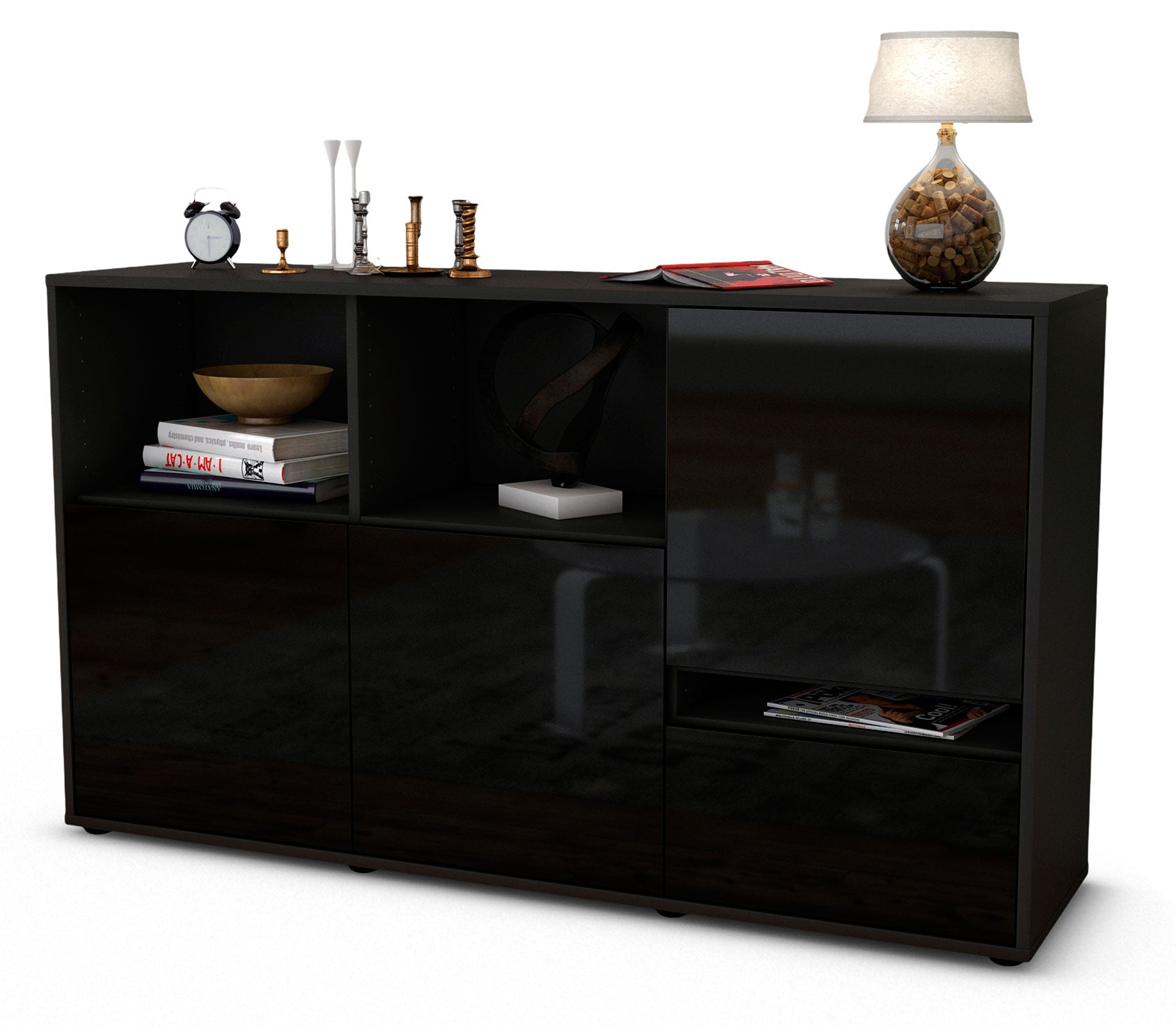 Dieses Sideboard hat Gesamt-Maße von 136x79x35cm. Viel Platz, eine leere Wand, kein passendes Möbelstück? Unsere 1,36 m lange Kommode ist die perfekte Lösung! Die Frontfarbe Hochglanz Schwarz ist eine der beliebtesten Möbelfarben. Glanz Dekore sind hoch modern und liegen immer im Trend. Die Front ist glänzend und und leicht spiegelnd. Der anthrazit-matte Korpus harmoniert mit allen Farben und wirkt besonders edel im Kontrast zu hellen Wänden.