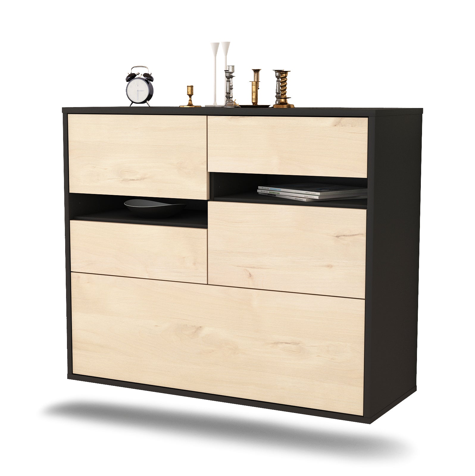 Dieses Sideboard hat Gesamt-Maße von 92x79x35cm. Viel Platz, eine leere Wand, kein passendes Möbelstück? Unsere 92 cm lange Kommode ist die perfekte Lösung! Die Holz Front Zeder Nachbildung ist ein Holz Dekor welches sehr hell und mit einer dezenten Holzmaserung punktet. Durch das frische Dekor ist der Schrank ideal für alle Räume geeignet. Der anthrazit-matte Korpus harmoniert mit allen Farben und wirkt besonders edel im Kontrast zu hellen Wänden.