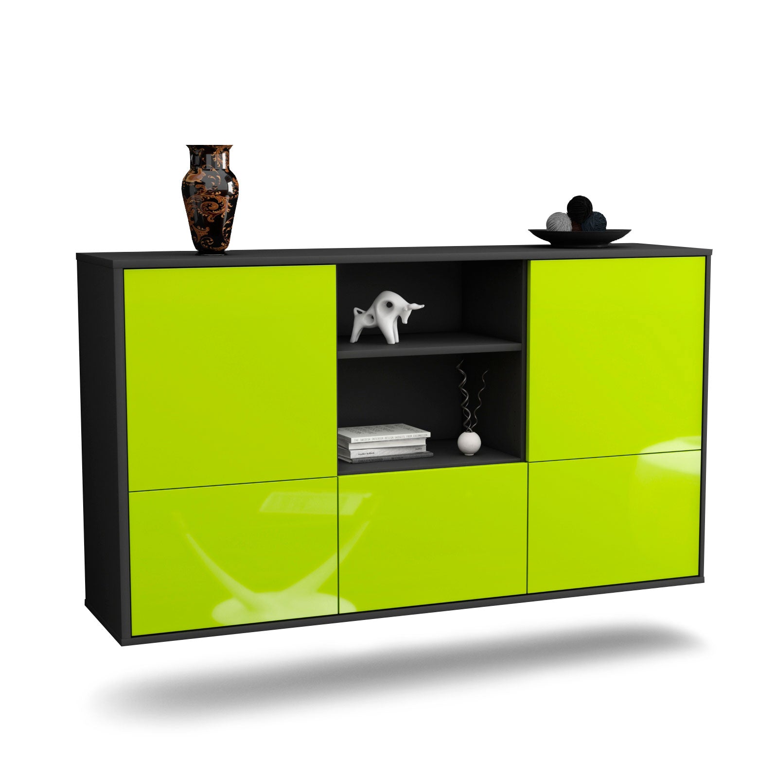 Dieses Sideboard hat Gesamt-Maße von 136x79x35cm. Viel Platz, eine leere Wand, kein passendes Möbelstück? Unsere 1,36 m lange Kommode ist die perfekte Lösung! Die Frontfarbe Hochglanz Limettengrün bringt Schwung, Glanz und Farbe in jede Wohnung. Das knallig, leuchtende grün ist glänzend und wirkt wie ein frisches Apfelgrün oder eine saftige Limette. Der anthrazit-matte Korpus harmoniert mit allen Farben und wirkt besonders edel im Kontrast zu hellen Wänden.