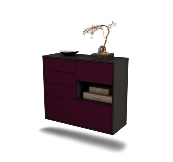 Dieses Sideboard hat Gesamt-Maße von 92x79x35cm. Viel Platz, eine leere Wand, kein passendes Möbelstück? Unsere 92 cm lange Kommode ist die perfekte Lösung! Die Frontfarbe im kräftigen Aubergine wirkt als Farbtupfer in allen Räumlichkeiten. Lila, violett und Brombeer Töne versprühen Glamour und Eleganz. Der anthrazit-matte Korpus harmoniert mit allen Farben und wirkt besonders edel im Kontrast zu hellen Wänden.