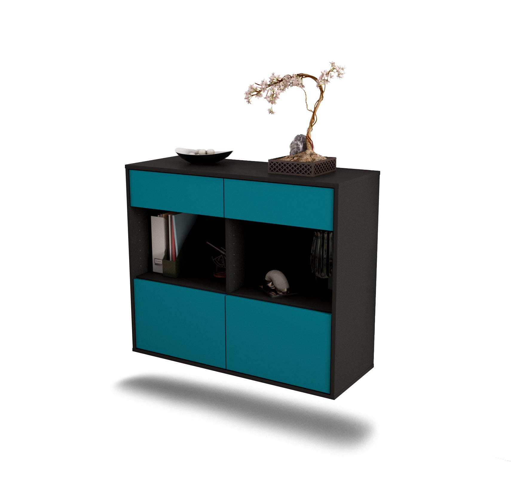 Dieses Sideboard hat Gesamt-Maße von 92x79x35cm. Viel Platz, eine leere Wand, kein passendes Möbelstück? Unsere 92 cm lange Kommode ist die perfekte Lösung! Die Frontfarbe im freundlichen Lagunenblau bringt das schöne Wetter in jedes Zuhause. Das intensive Türkis erinnert an die Karibik und schafft tagtägich einen zusätzlichen Erhoungsfaktor. Der anthrazit-matte Korpus harmoniert mit allen Farben und wirkt besonders edel im Kontrast zu hellen Wänden.