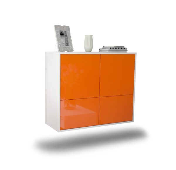 Dieses Sideboard hat Gesamt-Maße von 92x79x35cm. Viel Platz, eine leere Wand, kein passendes Möbelstück? Unsere 92 cm lange Kommode ist die perfekte Lösung! Die Frontfarbe Hochglanz Mandarine überzeugt durch ein intensives Orange mit tollem Glanz. Fröhlich und gläzend wird diese Farbe jeden Raum für sich einehmen. Der weiße matte Korpus kann überall integriert werden. Mit der beruhigenden Farbe weiß, findet sich leicht Stellplatz für dieses schöne Möbelstück.