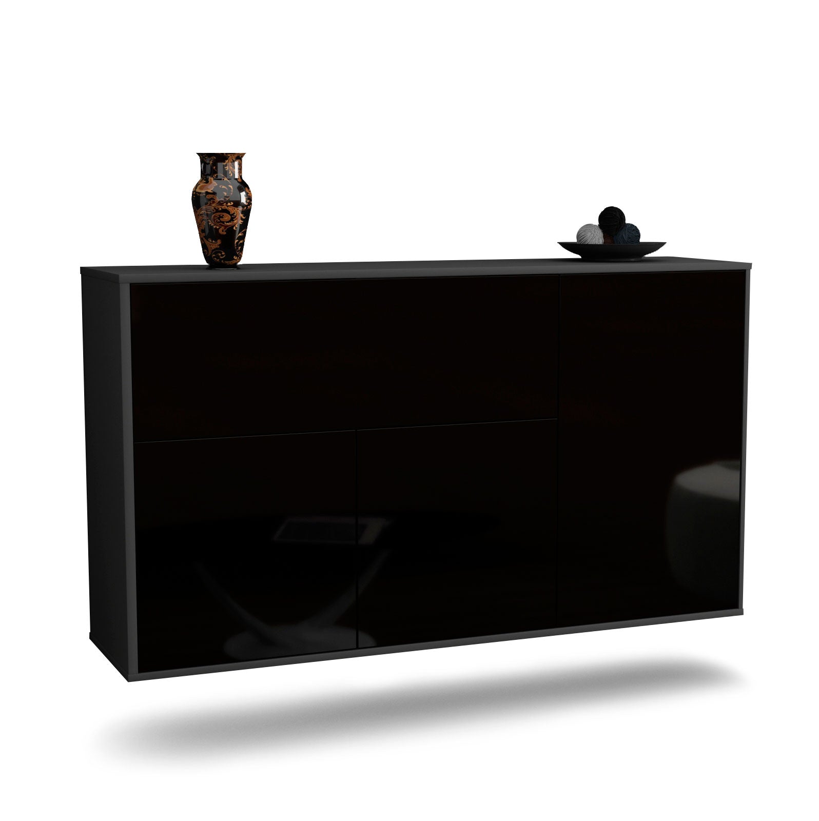 Dieses Sideboard hat Gesamt-Maße von 136x79x35cm. Viel Platz, eine leere Wand, kein passendes Möbelstück? Unsere 1,36 m lange Kommode ist die perfekte Lösung! Die Frontfarbe Hochglanz Schwarz ist eine der beliebtesten Möbelfarben. Glanz Dekore sind hoch modern und liegen immer im Trend. Die Front ist glänzend und und leicht spiegelnd. Der anthrazit-matte Korpus harmoniert mit allen Farben und wirkt besonders edel im Kontrast zu hellen Wänden.