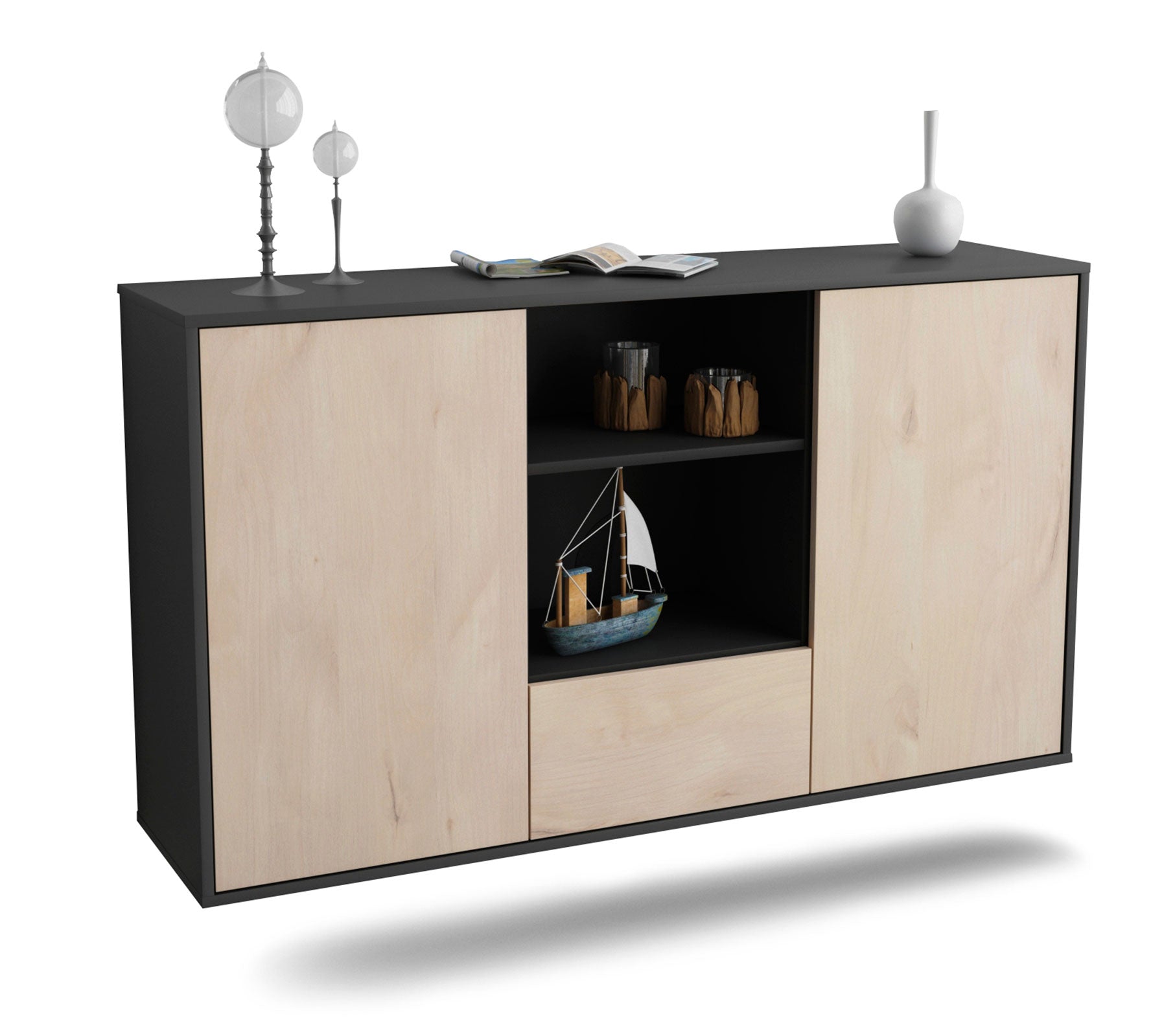 Dieses Sideboard hat Gesamt-Maße von 136x79x35cm. Viel Platz, eine leere Wand, kein passendes Möbelstück? Unsere 1,36 m lange Kommode ist die perfekte Lösung! Die Holz Front Zeder Nachbildung ist ein Holz Dekor welches sehr hell und mit einer dezenten Holzmaserung punktet. Durch das frische Dekor ist der Schrank ideal für alle Räume geeignet. Der anthrazit-matte Korpus harmoniert mit allen Farben und wirkt besonders edel im Kontrast zu hellen Wänden.