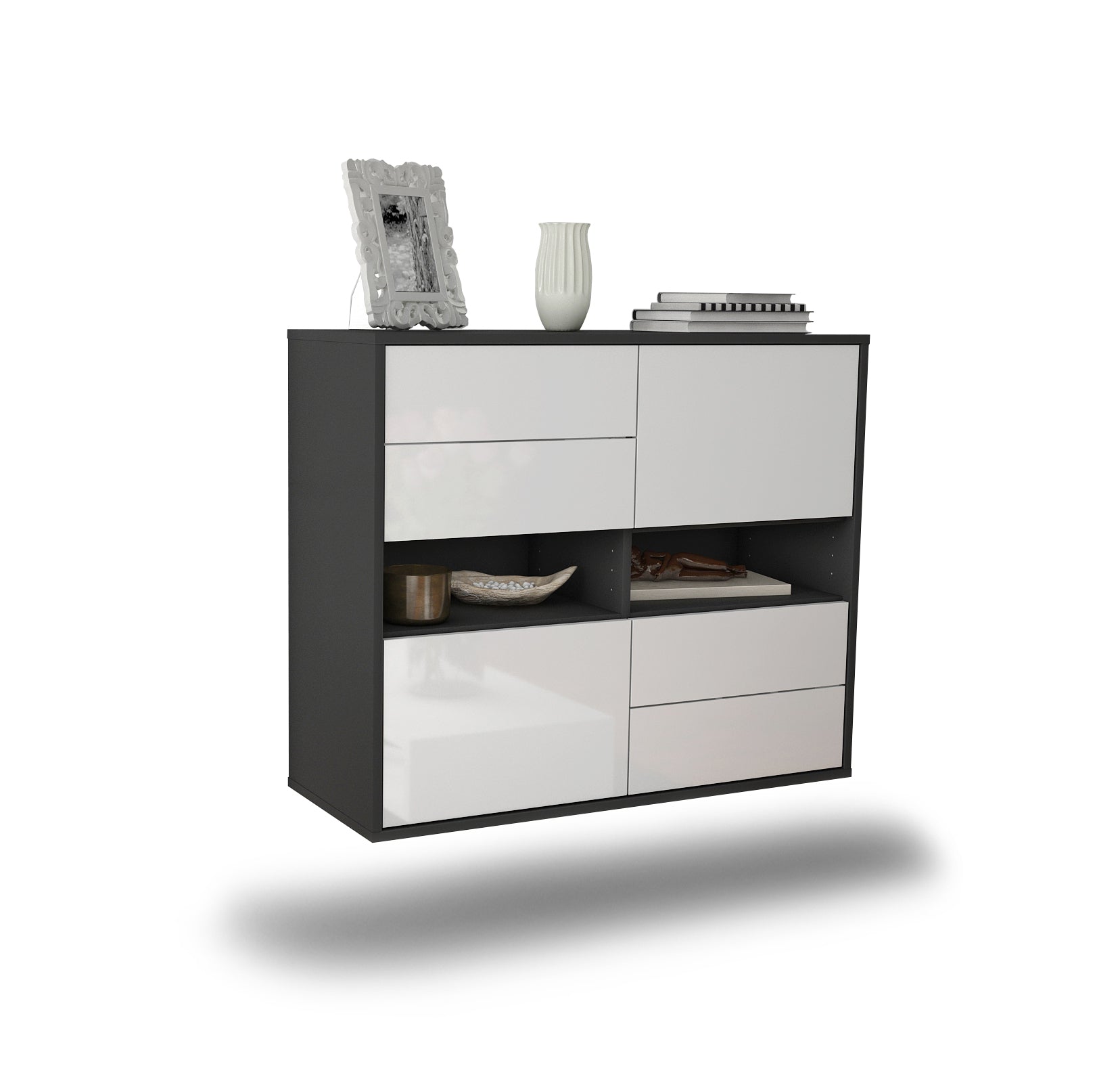 Dieses Sideboard hat Gesamt-Maße von 92x79x35cm. Viel Platz, eine leere Wand, kein passendes Möbelstück? Unsere 92 cm lange Kommode ist die perfekte Lösung! Die Frontfarbe Hochglanz Weiß bringt als reine und unschuldige Farbe Ruhe in jeden Raum. Mit dem Glanz Weiss erzeugt man einen hochwertigen glänzenden Kontrast zu dunklen Wänden. Der anthrazit-matte Korpus harmoniert mit allen Farben und wirkt besonders edel im Kontrast zu hellen Wänden.