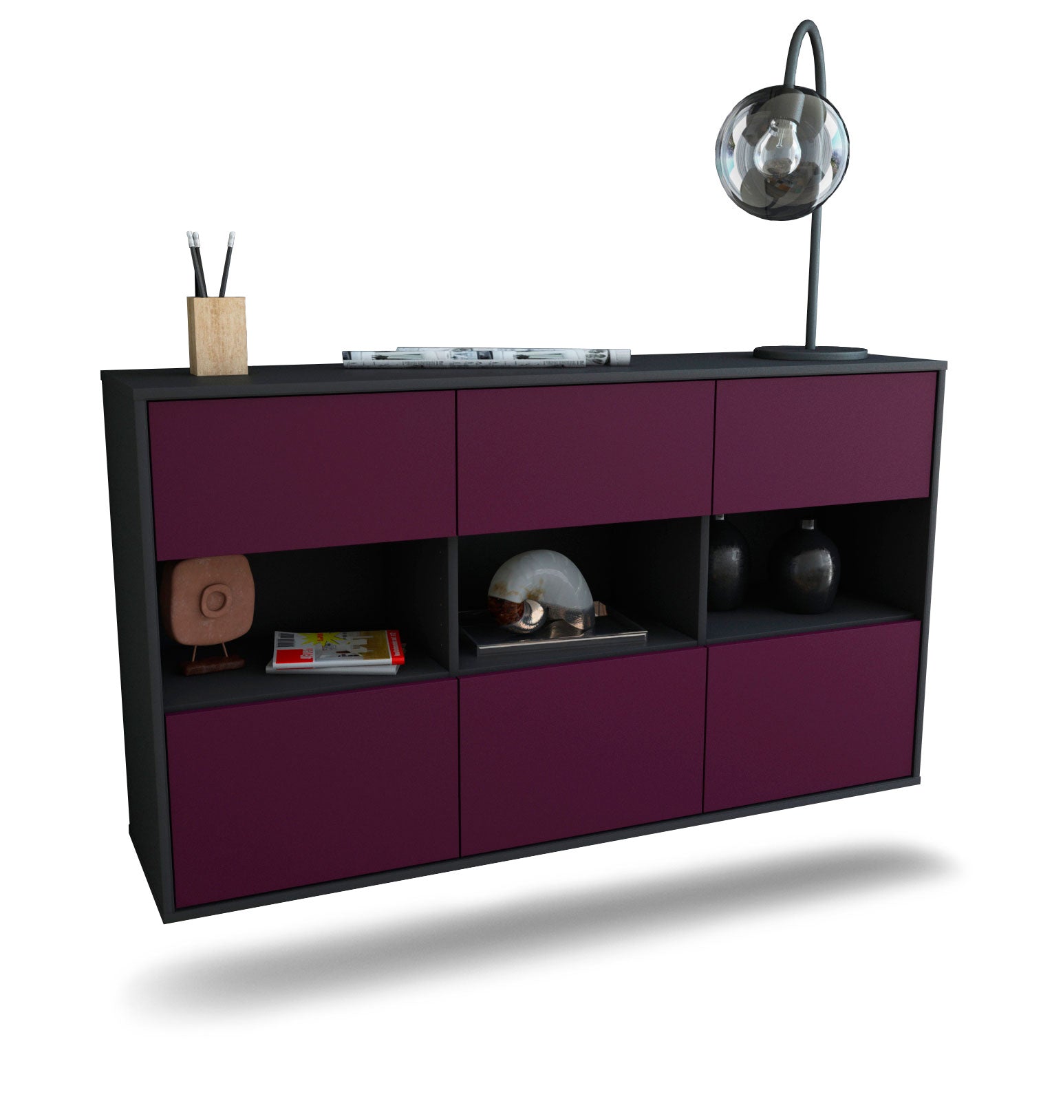 Dieses Sideboard hat Gesamt-Maße von 136x79x35cm. Viel Platz, eine leere Wand, kein passendes Möbelstück? Unsere 1,36 m lange Kommode ist die perfekte Lösung! Die Frontfarbe im kräftigen Aubergine wirkt als Farbtupfer in allen Räumlichkeiten. Lila, violett und Brombeer Töne versprühen Glamour und Eleganz. Der anthrazit-matte Korpus harmoniert mit allen Farben und wirkt besonders edel im Kontrast zu hellen Wänden.