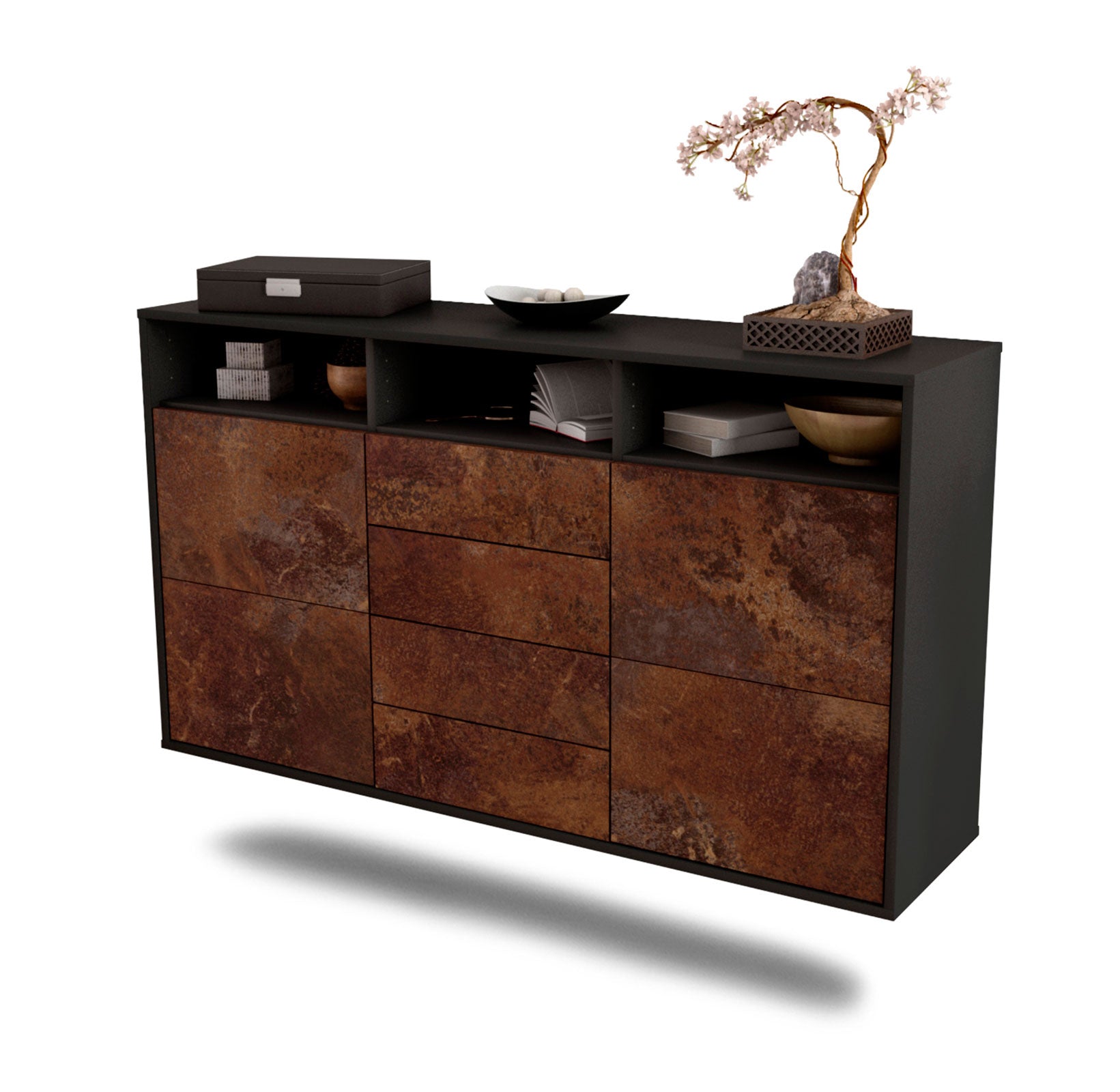 Dieses Sideboard hat Gesamt-Maße von 136x79x35cm. Viel Platz, eine leere Wand, kein passendes Möbelstück? Unsere 1,36 m lange Kommode ist die perfekte Lösung! Die Frontfarbe Rost wirkt antik und verleiht einen Retro Industrie-Look. Die Darstellung von alten, verwitterten oder verrosteten Metall / Eisen wirkt Rot-Braun bzw. Bronze-Farben. Der anthrazit-matte Korpus harmoniert mit allen Farben und wirkt besonders edel im Kontrast zu hellen Wänden.