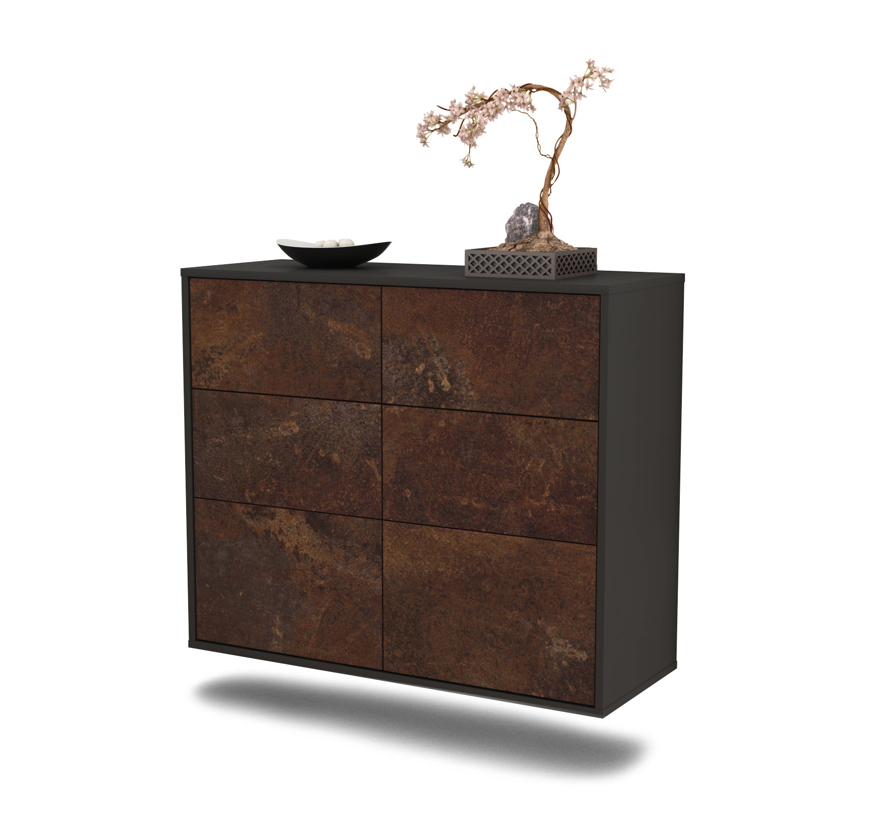 Dieses Sideboard hat Gesamt-Maße von 92x79x35cm. Viel Platz, eine leere Wand, kein passendes Möbelstück? Unsere 92 cm lange Kommode ist die perfekte Lösung! Die Frontfarbe Rost wirkt antik und verleiht einen Retro Industrie-Look. Die Darstellung von alten, verwitterten oder verrosteten Metall / Eisen wirkt Rot-Braun bzw. Bronze-Farben. Der anthrazit-matte Korpus harmoniert mit allen Farben und wirkt besonders edel im Kontrast zu hellen Wänden.