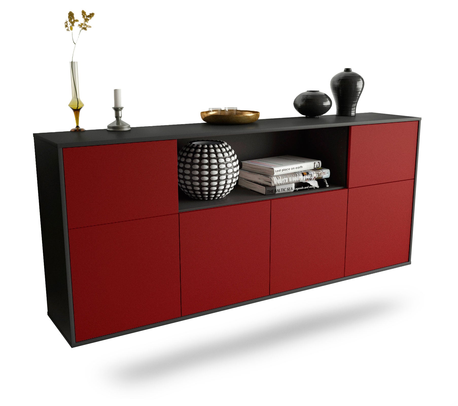Dieses Sideboard hat Gesamt-Maße von 180x79x35cm. Viel Platz, eine leere Wand, kein passendes Möbelstück? Unsere 1,80 m lange Kommode ist die perfekte Lösung! Die Frontfarbe dunkles Bordeaux Rot bringt Wärme ins Haus. Das intensive Weinrot ist einer der edelsten Rot Töne und verleiht jeder Einrichtung einen Glamour Faktor.Der anthrazit-matte Korpus harmoniert mit allen Farben und wirkt besonders edel im Kontrast zu hellen Wänden.