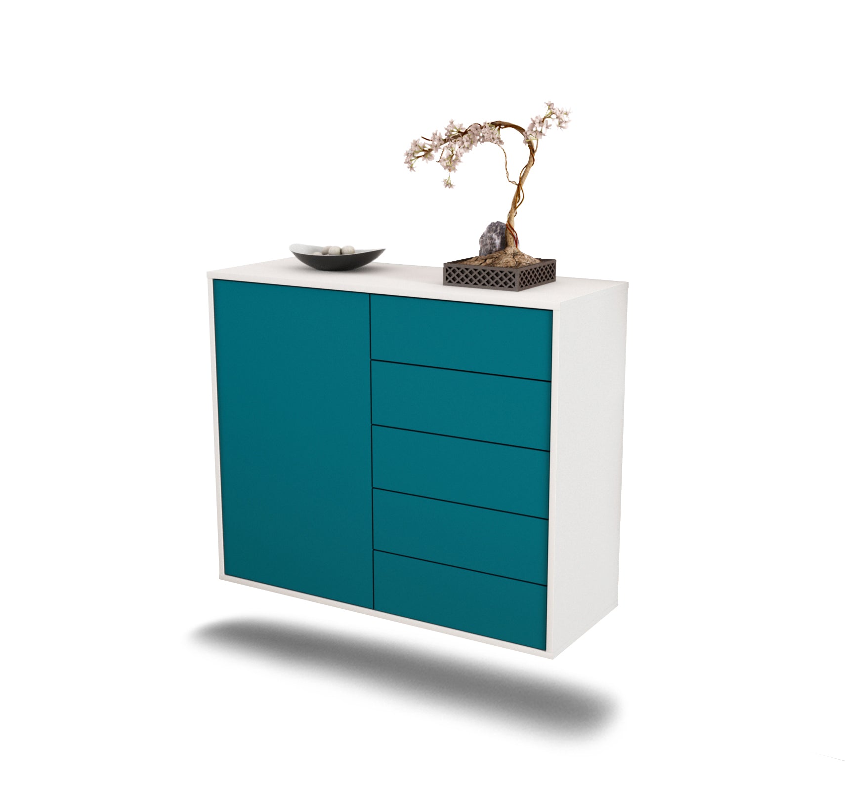 Dieses Sideboard hat Gesamt-Maße von 92x79x35cm. Viel Platz, eine leere Wand, kein passendes Möbelstück? Unsere 92 cm lange Kommode ist die perfekte Lösung! Die Frontfarbe im freundlichen Lagunenblau bringt das schöne Wetter in jedes Zuhause. Das intensive Türkis erinnert an die Karibik und schafft tagtägich einen zusätzlichen Erhoungsfaktor. Der weiße matte Korpus kann überall integriert werden. Mit der beruhigenden Farbe weiß, findet sich leicht Stellplatz für dieses schöne Möbelstück.